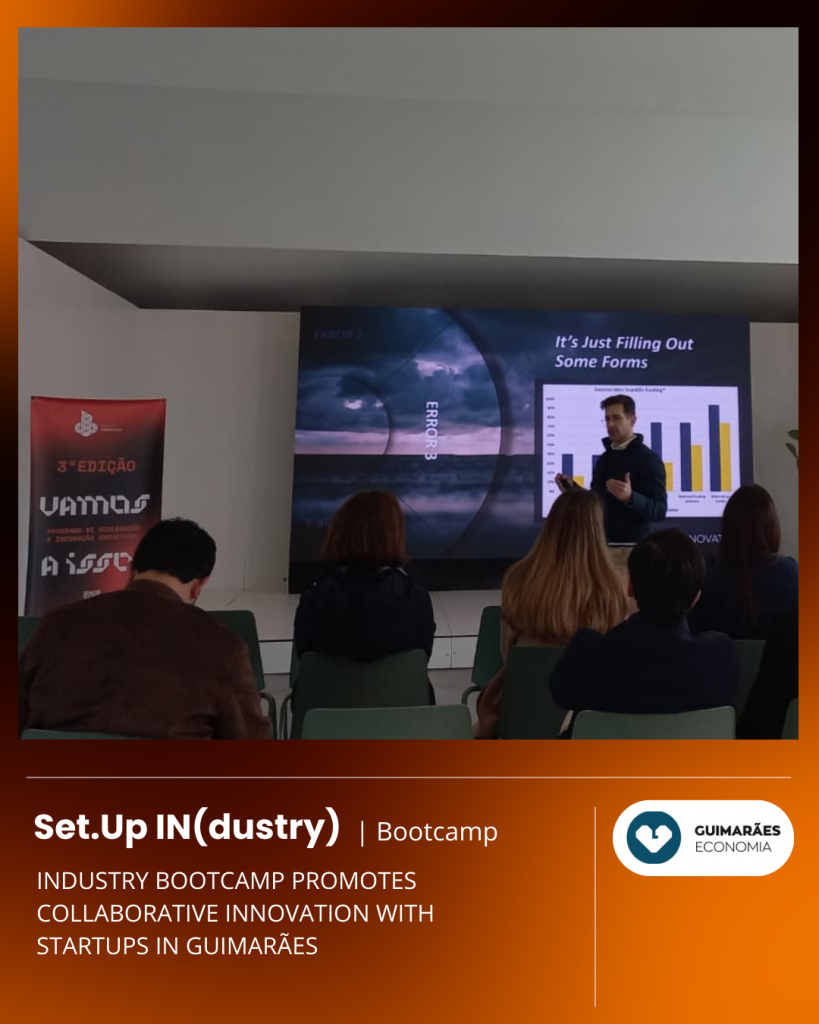 This bootcamp is part of the Set.Up Industry acceleration program promoted by the Municipality of Guimarães, which seeks to connect startups and industrial companies through the development of pilot projects and innovative solutions addressing real industrial challenges. The initiative therefore reinforces the creation of strong links between entrepreneurship and the productive sector, promoting open innovation processes with direct impact on the local economy.