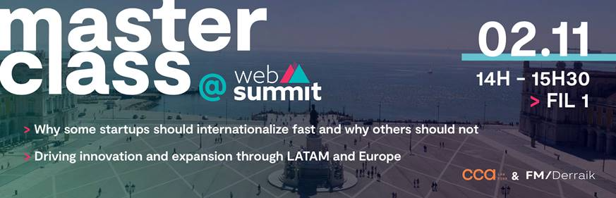 On November 2nd, CCA Law Firm and FM/Derraik, a brazilian leading law firm specialized in Venture Capital and Tech companies, team up to organize a masterclass with 2 sessions within the biggest technology event in the world, Web Summit. With speakers from the LATAM markets, we hope to bring you insights on venture capitals, internationalization, investors and the entrepreneurship ecosystem. More